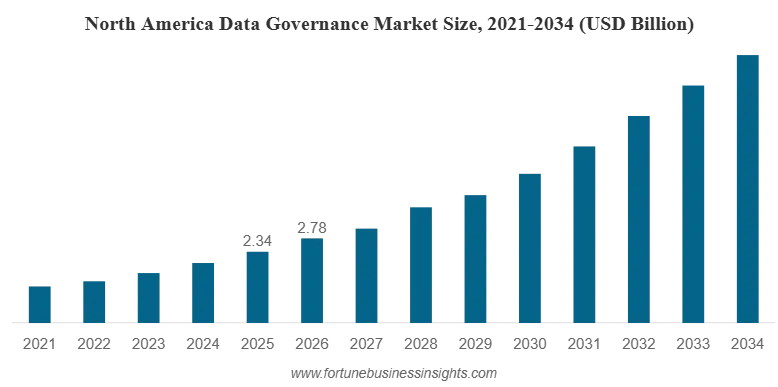 According to a report by Fortune Business Insights, the global data governance market size was valued at USD 5.38 billion in 2025. The market is projected to grow from USD 5.38 billion in 2026 to USD 24.07 billion by 2034, exhibiting a CAGR of 20.50% during the forecast period. North America dominated the global market with a share of 43.50% in 2025.